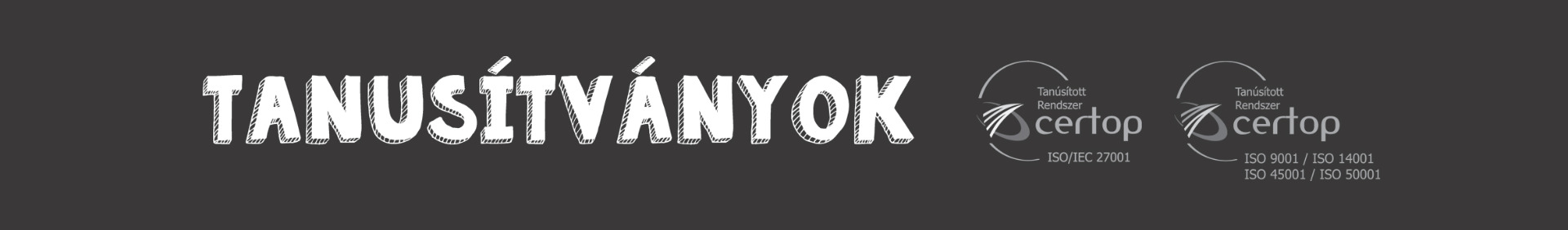 Működésünket több nemzetközi szabvány szerint tanúsított irányítási rendszer garantálja: ISO 9001, ISO 14001, MSZ 28001 és ISO 50001. A legújabb ISO 27001 információbiztonsági irányítási rendszer 2024-ben került bevezetésre.